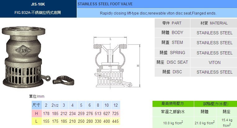 FIG.932A不锈钢拉柄式底阀-台湾东光RING阀门资料来自上海铁王阀门有限公司提供,如需转载请注明资料来源: