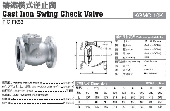 FIG FK铸铁横式逆止阀-台湾KGMC金口阀门资料来自上海铁王阀门有限公司提供,如需转载请注明资料来源:
